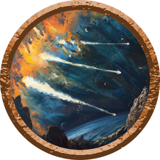 Three CometsSeveral years later, the races of Udari bore witness to three comets that crashed down upon land. However, they were not like some meteor that came out of the sky and struck the earth. They came all at once, and then split in different directions landing upon places where the obelisks once stood, leaving behind massive craters. When they investigated them however, all they could see was a large stone resembling that of a meteor or comet. Its construction was a strange metal that seemed to emanate a divine power.