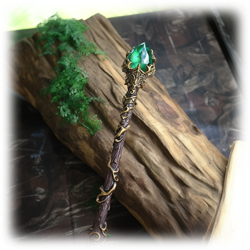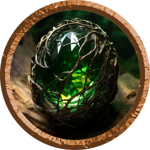 The Gnarled Staff of the ForestWhen defeated, the prime elemental Yanase and her essence was left behind as a large, blooming, and green orb of energy. Ruloth the Green gave his life to harmonize with it, turning the orb of energy into a brilliant gemstone with the appearance of deep green emerald. In the facets of the gem one can see reflections depicting the ecosystem around it and how each element is connected to its neighbor. The gemstone, when used by the one chosen to wield it, can turn itself into the Gnarled Staff of the Forest. The staff can harness the power of the earth and the life energy it holds, capable of either creating life, or purposely destroying it. The gem itself is the only one of its kind that will actively find a way to reacquaint itself with its chosen if separated from it.