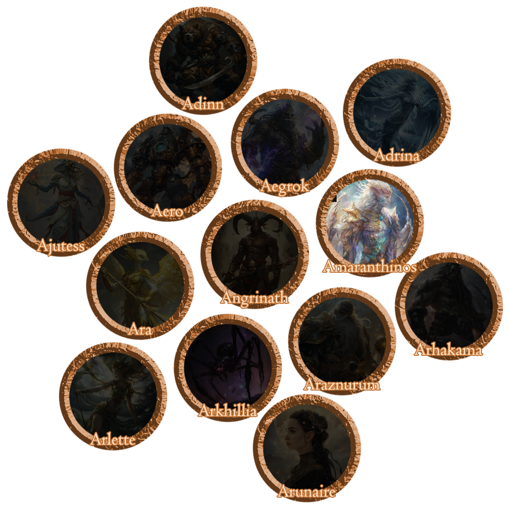 Amaranthinos’ life had become that of a dwarf noble named Tordek Durthane. As he grew up in this life, he had been groomed to become the future lord of his land of Dun’Alor. His father, Travok, was a stubborn and vile lord. It was believed one of his own subjects had assassinated him, but the culprit was never brought to justice. By default, Tordek was forced to assume the throne at an early age, but even so, he vowed to be better than his father. This task was not easy, but Tordek showed diligence by keeping his heart noble, and becoming a resilient and honorable leader. He displayed humility. Even though he was a lord with wealth and power, he believed he was not above the laws or rights of any other. This belief became evident through his actions and interactions with his subjects. He displayed charity by distributing surplus food to the impoverished, even during hardship. He displayed chastity by resisting alcohol, a feat uncommon for dwarves. He showed gratitude by praying, giving thanks, and making sacrifices in the name of his gods. He showed temperance by refusing to increase taxes or take more than what was needed from his people. Finally, he showed patience when arbitrating conflicts, especially with unruly litigants. Tordek Durthane grew to live a long life as the kingdom of Dun’Alor grew and prospered. His wife Urshar, daughter Finellen, and son Uraim outlived him, but the entire kingdom blessed them at all his passing, an honor his father Travok did not. When Tordek appeared before Ohtli he revered the massive, winged serpent. Ohtli, then with a steady claw, carefully plucked a feather from one of her wings and placed it upon one side of the large golden scale. Then, in a violent motion she thrust her talons at Tordek’s chest, ripping his heart from him. Tordek’s ethereal form became Amaranthinos once more as Ohtli placed the heart upon the scale. The golden platforms tipped back and forth several times before finally coming to a stop. The needle in the middle laid to rest. Dead center. Ohtli took a step back and bowed before Amaranthinos. The remaining gods, Araznurum, Arunaire, and Arhakama stood nearby and bowed in respect as well. Return to Top